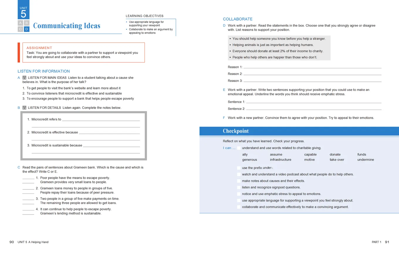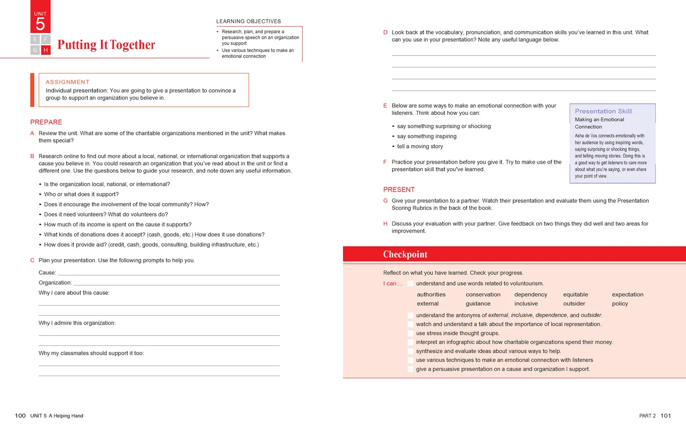 Each unit moves from focused listening and language work to a tangible product such as a mini talk or panel discussion, with targeted feedback that turns techniques into habits.
